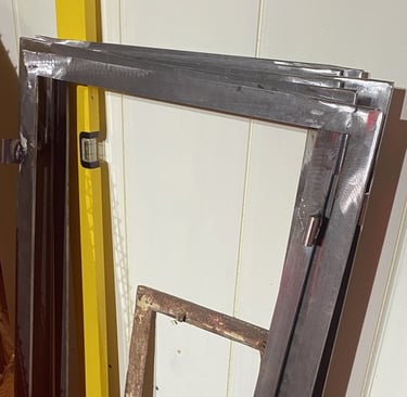 And here is one of the steel frames that Paul fixed into a wooden window. Now all it needs is some paint and its leaded glass and it’s good to go. You can't get much more medieval than that.