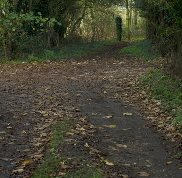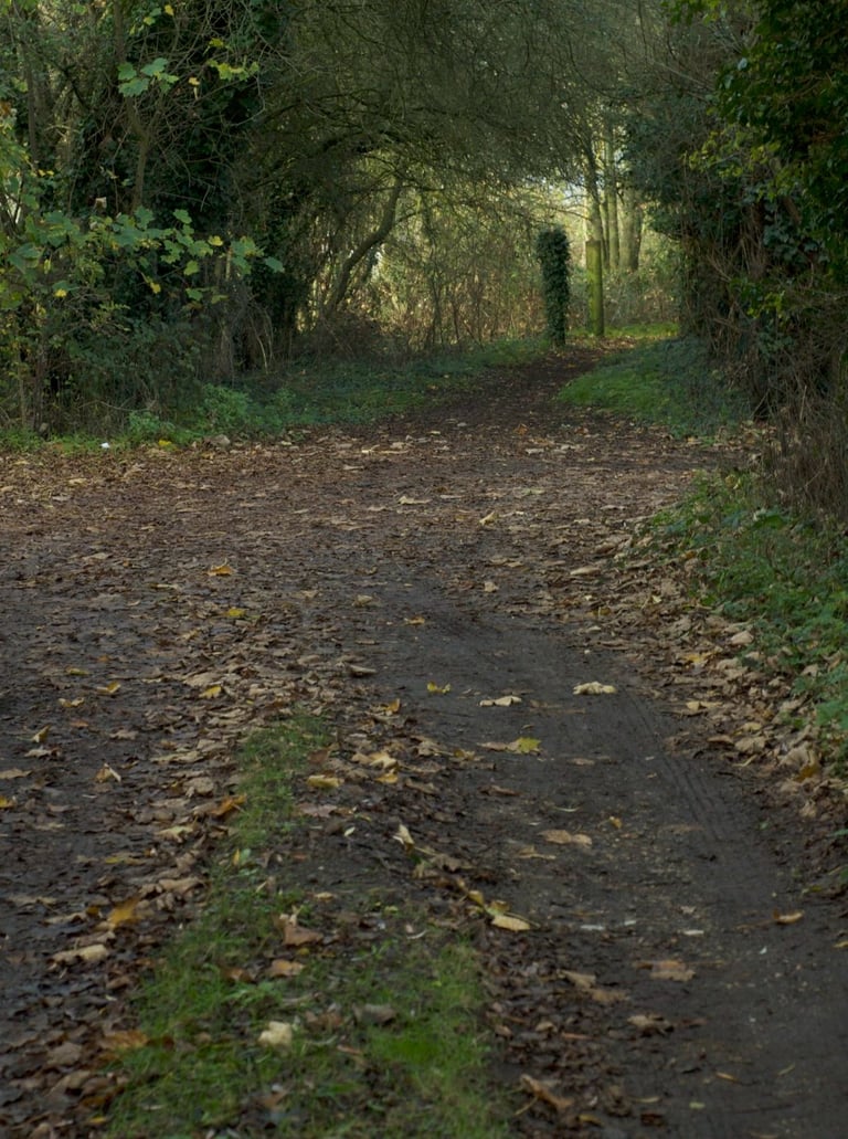I would have also included a picture of the outside but it's not the easiest of places to photograph, as you can probably see from the track up to to the house, which looks like this. His place is off to the left hiding behind the gloriously out of control hedge on the left.