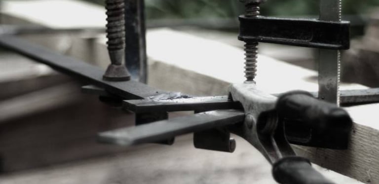 Another challenge was the hinges. They were made of mild steel cut into thirds to create a single pivot. The steel was only about 2mm thick, which is approaching the lower limit of what you can arc-weld. You can easily blow a hole through thin steel with an arc welder.